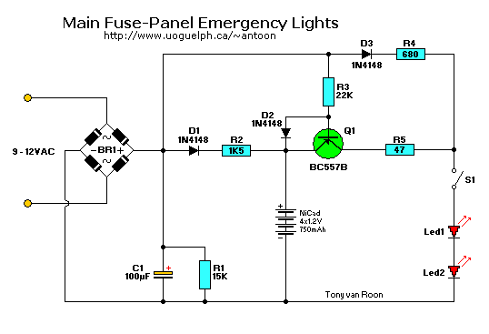 When the main power is interrupted for any reason, the circuit is fed via the 4 NiCads which provide 750mAh at about