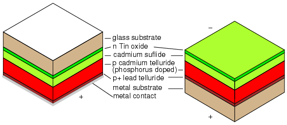 Cadmium telluride solar cell on glass or metal.