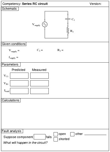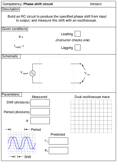 One way for students to do this assessment is to have them predict what the sine waves will look like, based on circuit component values. They sketch the predicted waveforms on the grid provided before actually hooking up an oscilloscope, then the instructor assesses them based on the conformity of the real oscilloscope display to their prediction.