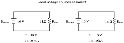 Similarly, an ideal (perfect) voltage source is an abstraction with no accurate realization in life. Thankfully, though, it is not difficult to build voltage sources that are relatively close to perfect: circuits with very low internal resistance such that the output voltage sags only a little under high-current conditions.